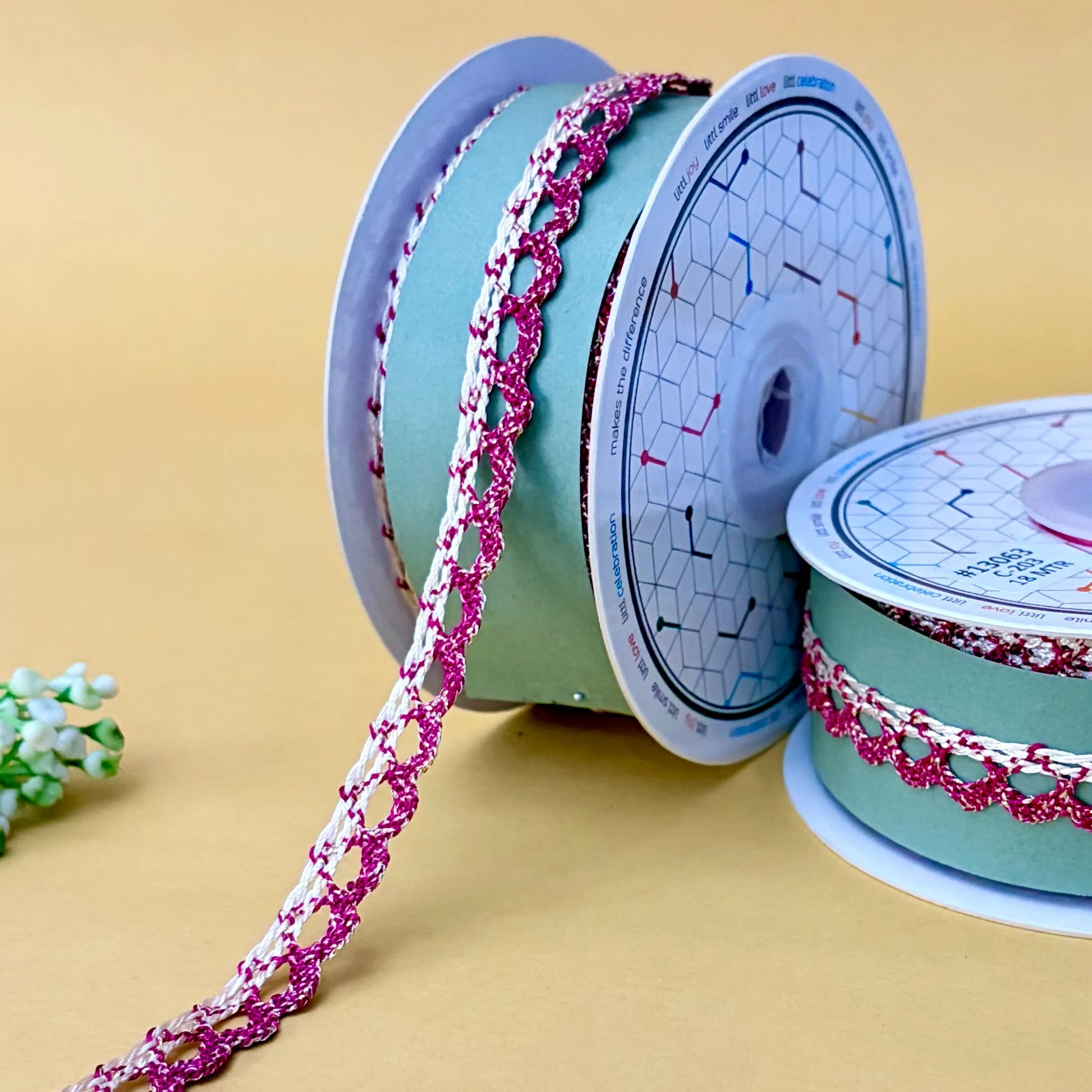 Delicately crafted from fine polyester, this Crochia Lace Trim adds a timeless handmade touch to any creation. Its intricate crochet design brings elegance and charm to sewing, fashion, and home décor projects. Perfect for embellishing garments, accessories, or decorations, this lace offers both durability and a soft, vintage appeal.