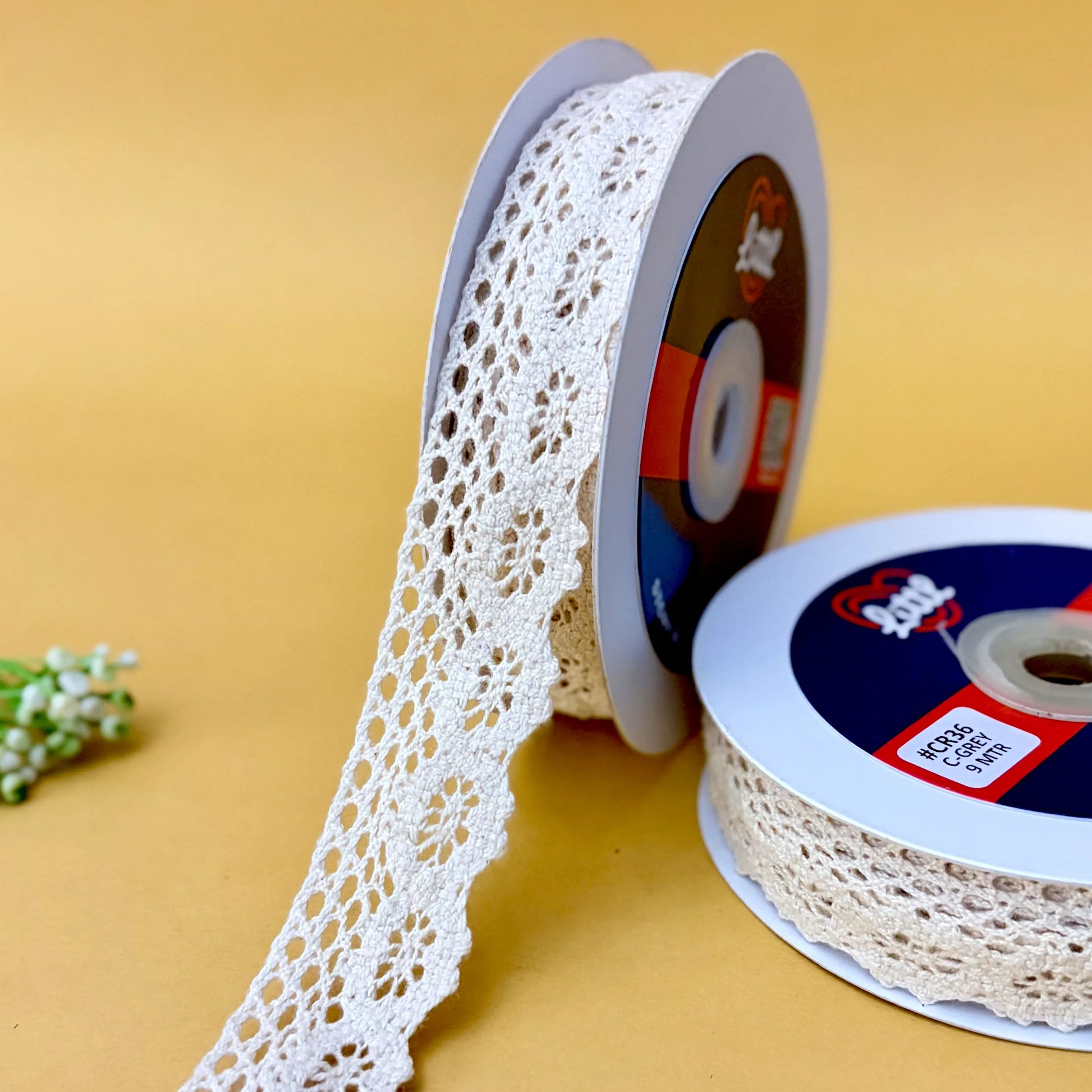 Delicately crafted from fine Cotton, this Crochia Cotton Lace Trim adds a timeless handmade touch to any creation. Its intricate crochet design brings elegance and charm to sewing, fashion, and home décor projects. Perfect for embellishing garments, accessories, or decorations, this lace offers both durability and a soft, vintage appeal.