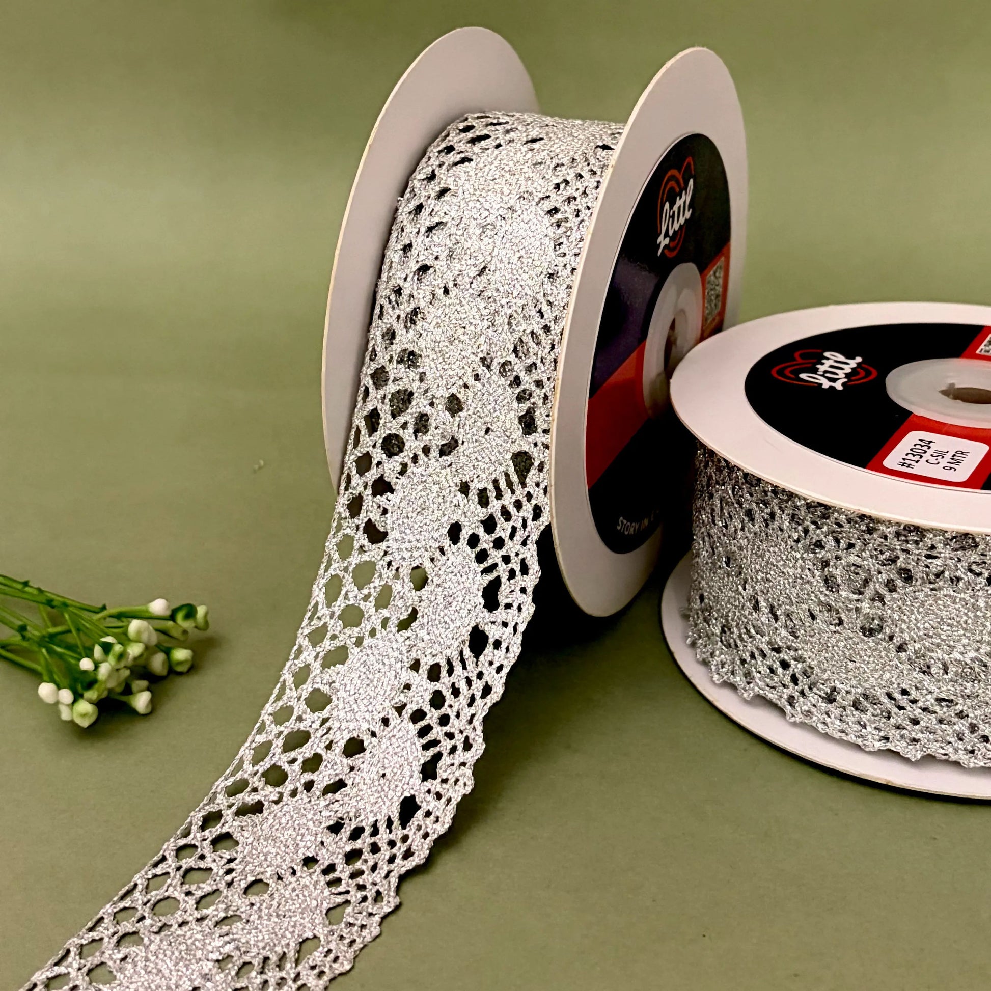 Delicately crafted from Metallic, this Crochia Metallic Lace Trim adds a timeless handmade touch to any creation. Its intricate crochet design brings elegance and charm to sewing, fashion, and home décor projects. Perfect for embellishing garments, accessories, or decorations, this lace offers both durability and a soft, vintage appeal.